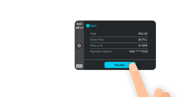 Turn your car's display into your personal payment terminal. With the seamless integration of PACE Drive into Apple CarPlay and Android Auto, paying at the gas station is now even easier and more convenient. Experience the future of fueling right from the driver's seat – without having to install an additional app in your car.