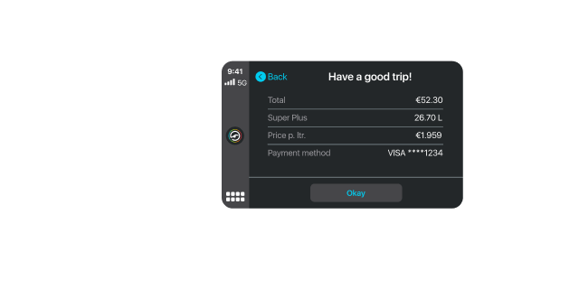 All important information, from finding a gas station to payment confirmation, is clearly displayed on your car's display.