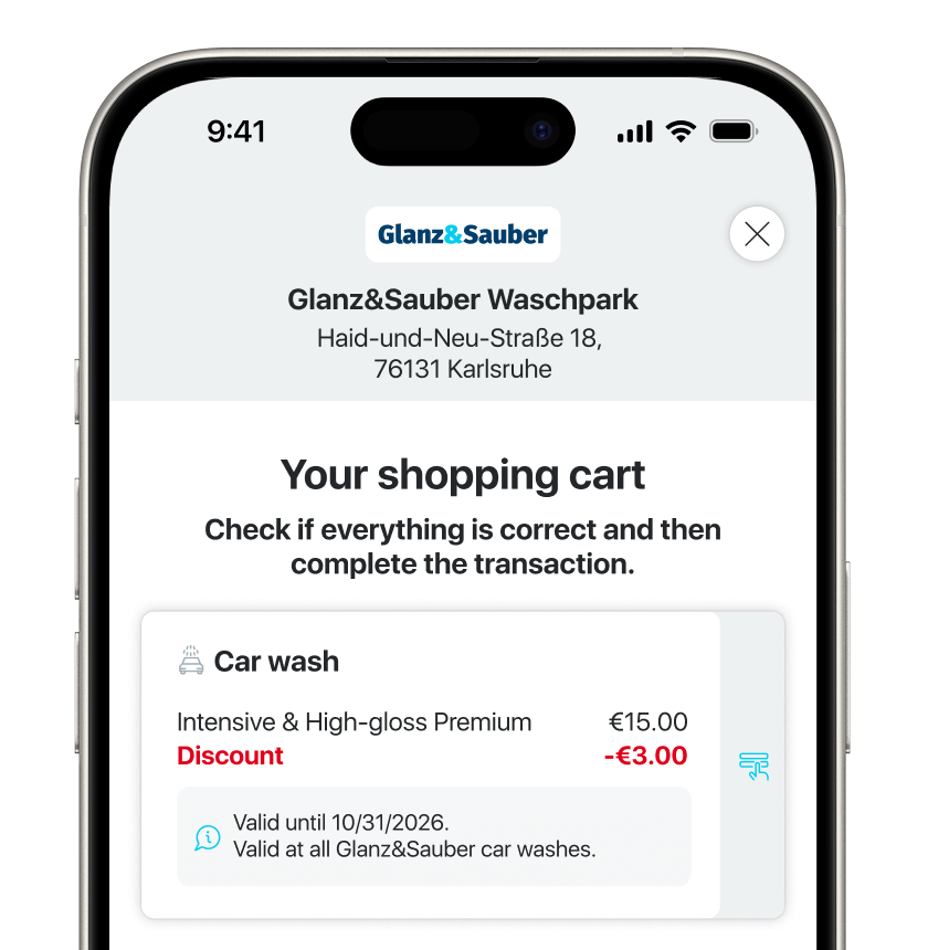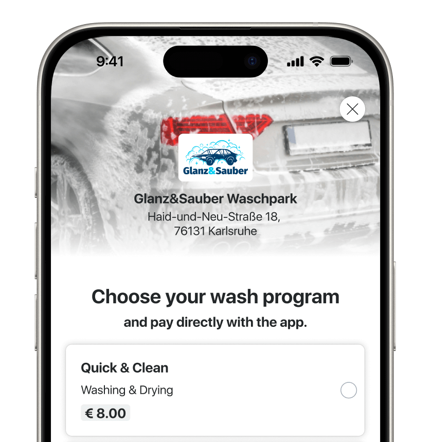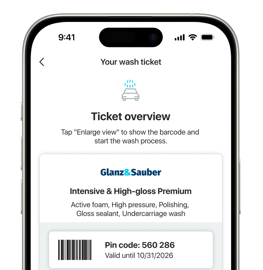 Combine your refueling stop with a car wash and do everything directly in the app.