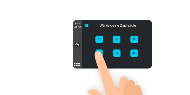 Nach dem Tanken wählst du die Nummer deiner Zapfsäule direkt auf dem Touchscreen deines Autos aus.