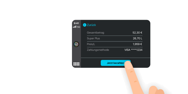 Bezahlen in Sekunden, direkt über dein Auto‑Display.